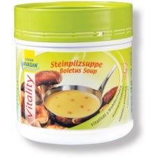 Состав: сухие белые грибы и грибной порошок, пшеничная мука, кукурузный и картофельный крахмал, сухое молоко, витамины и минералы, растительные пищевые волокна, йодированная соль, рапсовое масло, гуаровая мука Е412, глютамат натрия, грибной ароматизатор, куркума.