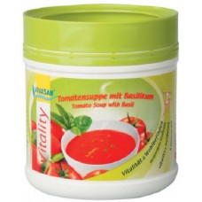 Состав: томаты (24%), растительные пищевые волокна, минеральные вещества, сухие пряности и экстракты (лук, чеснок, базилик), йодированная соль, порошок молочной сыворотки, пшеничная мука, кукурузный и картофельный крахмал, рапсовое масло, легко усвояемые молочные протеины.