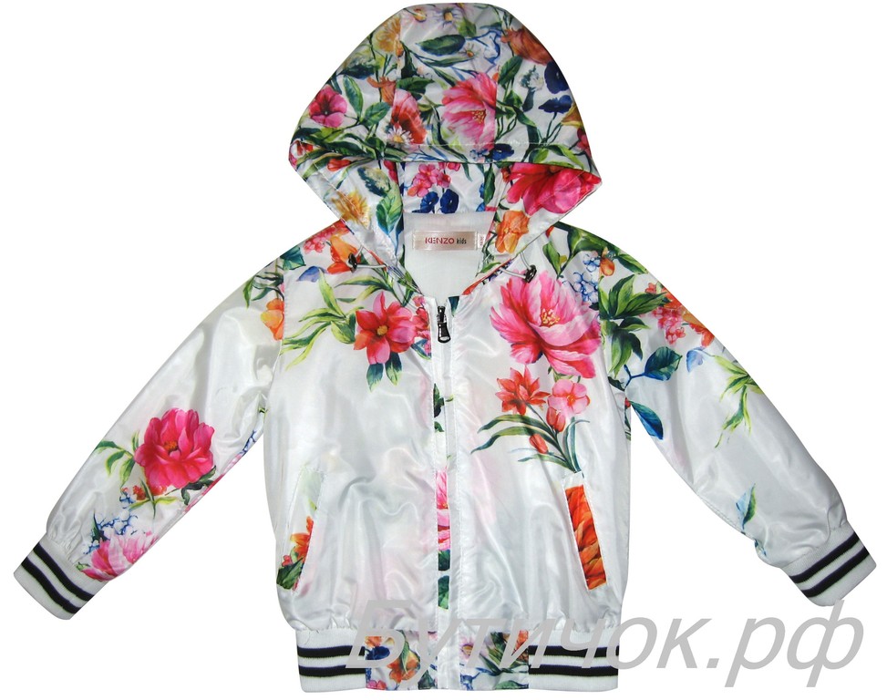 Капюшон затягивается резинкой, рукава и низ ветровки трикотажная резинка