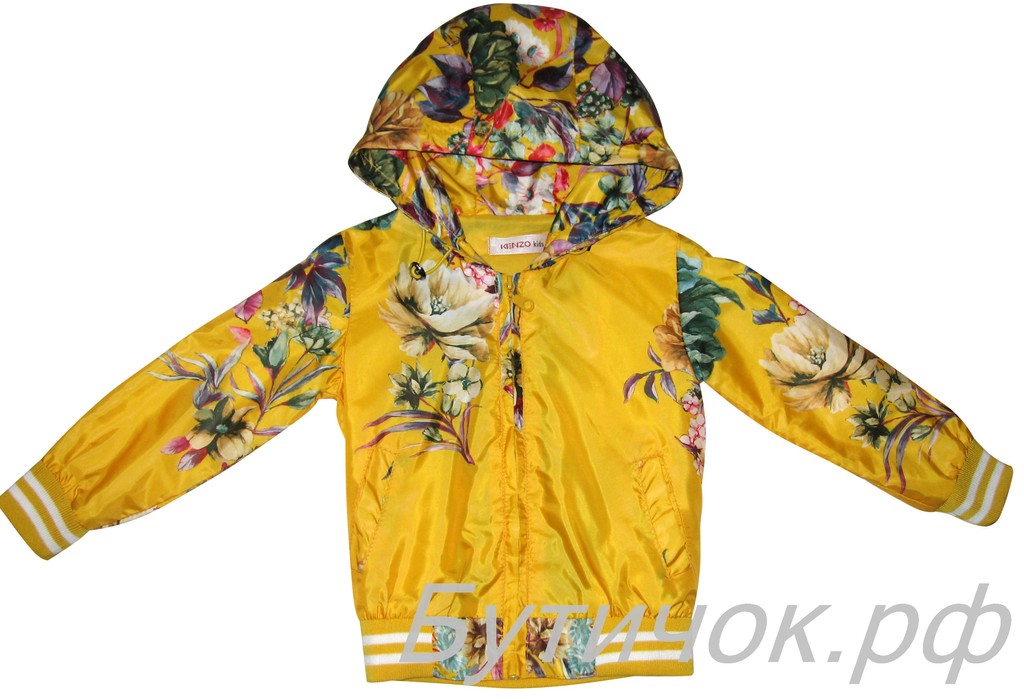 Капюшон затягивается резинкой, рукава и низ ветровки трикотажная резинка